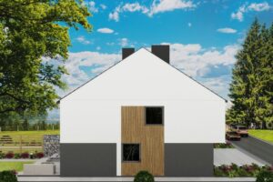 Na parterze znajduje się przestronny salon z kominkiem, łazienka, kotłownia z pralnią oraz garaż w bryle budynku. Na piętrze zaprojektowano cztery ustawne sypialnie, łazienkę i garderobę. Domy wyposażone są w ogrzewanie podłogowe na całej powierzchni, ekonomiczną pompę ciepła oraz rolety sterowane elektrycznie. Izolacja pianą PUR i styropianem 20 cm zapewnia doskonałą energooszczędność, a solidne materiały, takie jak YTONG czy dachówka ceramiczna, gwarantują trwałość na lata.